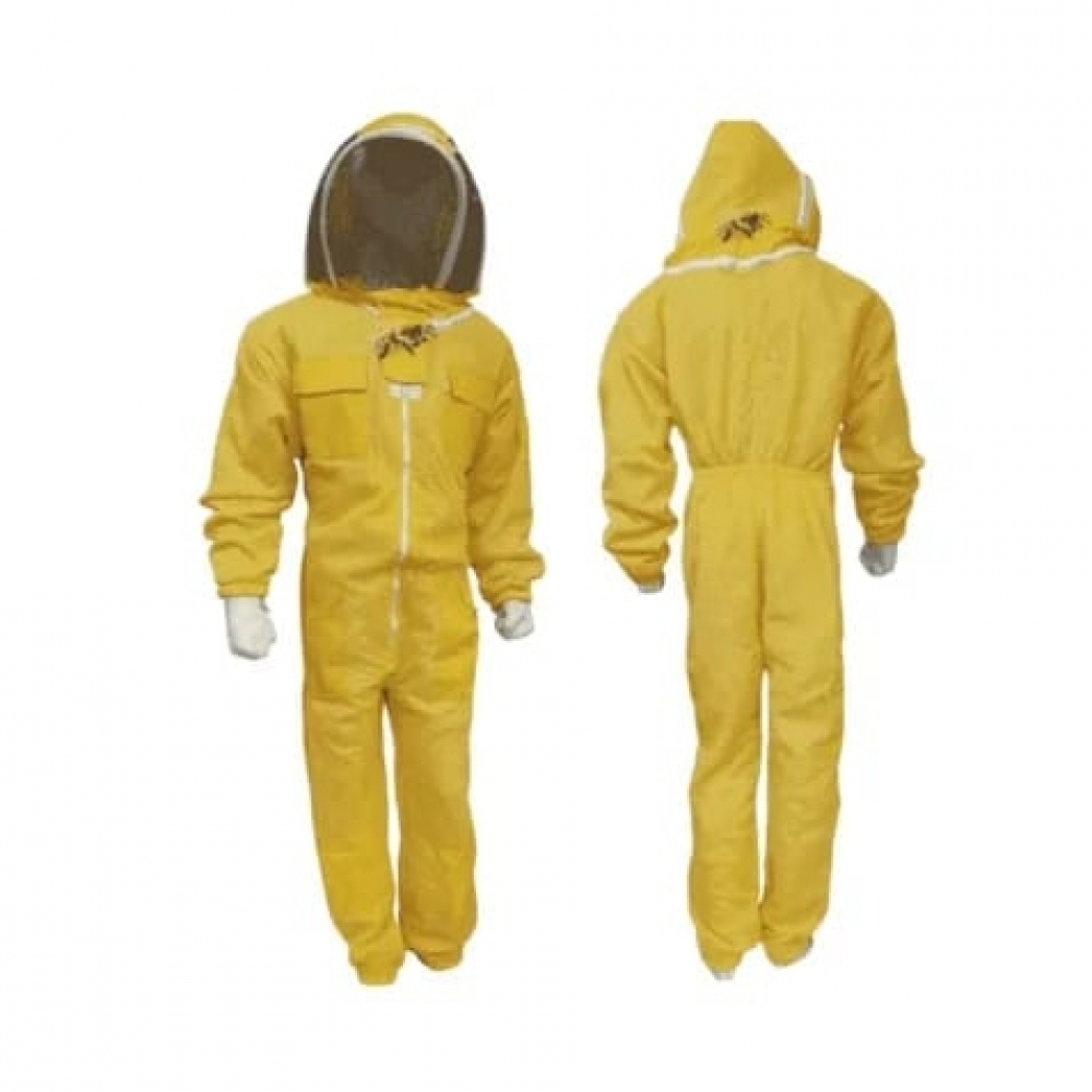 Questa tuta unica unisce stile astronautico e funzionalità apistica. Realizzata in resistente tessuto di cotone, presenta elastici ai polsi e alle caviglie per una vestibilità sicura. La maschera modello astronauta, in rete di alluminio ad ampia visibilità, è staccabile tramite cerniera per una comoda vestibilità.