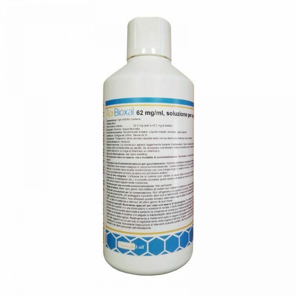 Prodotto veterninario a base di acido ossalico, formulato per il trattamento della varroa negli alveari. La soluzione è pronta all'uso e si presenta in una pratica confezione da 500 ml, sufficiente per trattare fino a 10 alveari da 10 tonnellate. Contiene glicerolo, che favorisce l'adesione del principio attivo sulle superfici interne dell'alveare.