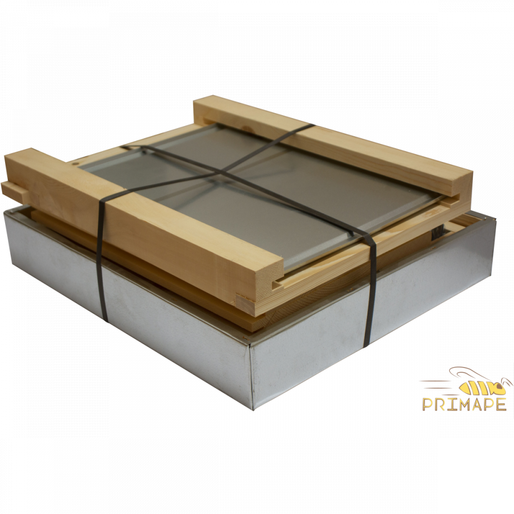 > fondo in legno con rete anti varroa e guide per vassoio
