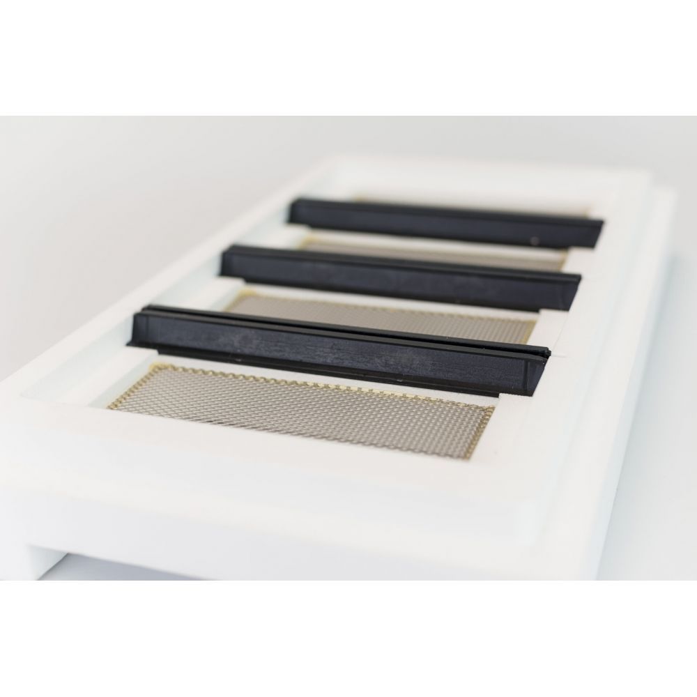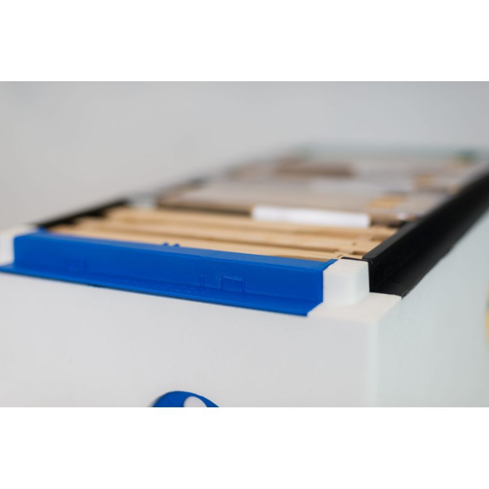 Quadri-Hive è un’arnia in polistirolo da fecondazione, che permette di allevare fino a quattro diverse regine, utilizzando la stessa arnia. L’idea nasce da apicoltori francesi che già utilizzavano arnie in legno con 3 mini nuclei. Il corpo della Quadri Hive, staccabile dal suo fondo, si incastra perfettamente sul nido della Poly Hive che può essere utilizzata ad inizio stagione come starter. Lo spazio interno dell’arnia viene poi diviso utilizzando tre divisorie verticali in acciaio inox. I 12 telai che compongo l’arnia vengono così facilmente ripartiti nelle singole colonie.