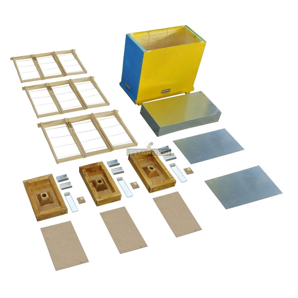 Dispone di 3 coprifavi a nutritore, due sono uguali all’arnietta T2, mentre il centrale è leggermente più piccolo; entrambi sono paraffinati, con camino centrale, e con apposita chiusura per il foro della nutrizione durante il trasporto.