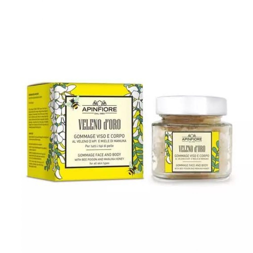 La texture finissima di questo gommage facilita il massaggio, offrendoti un momento di puro relax mentre ti prendi cura della tua pelle. La sua formula unica è una miscela di ingredienti naturali altamente concentrati, tra cui estratto di miele, fiori di sambuco, e olio di mandorle dolci, arricchiti con il potente veleno d'api e microgranuli di mandorla.
