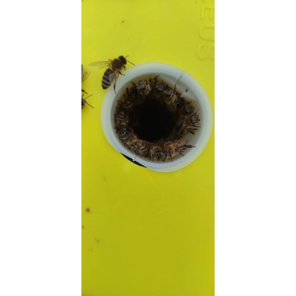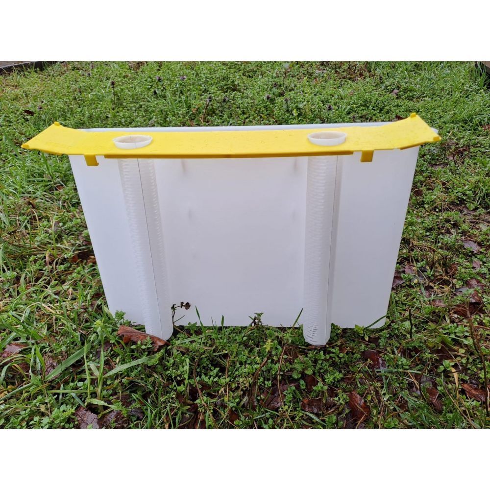- Efficienza Alimentare: Grazie alla sua capacità e al design a doppia tasca, il nutritore permette di alimentare le api in modo più efficiente, riducendo il tempo e lo sforzo necessari per le ricariche.