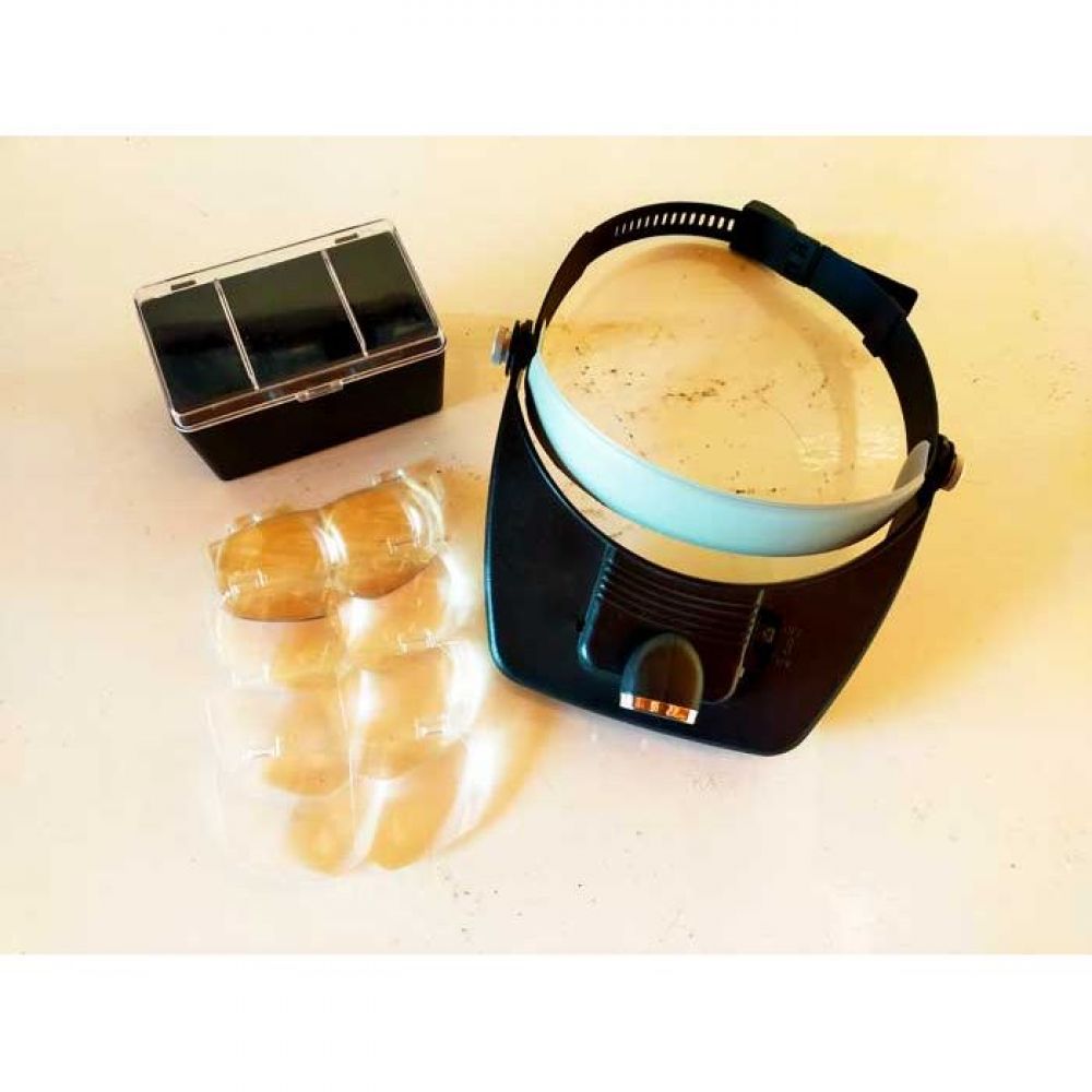 Visiera regolabile, con 4 lenti intercambiabili, luce direzionabile.